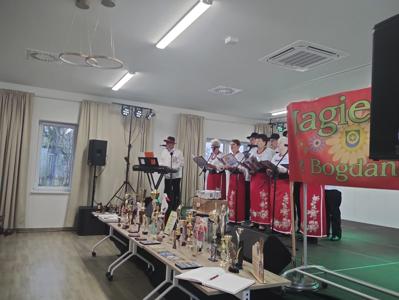 Podczas prezentacji lokalnego folkloru zespół Jagienki opowiedział dzieciom o swojej historii prezentując liczne trofea, dyplomy i kronikę uwrażliwiając je na piękno i wartość tradycji.