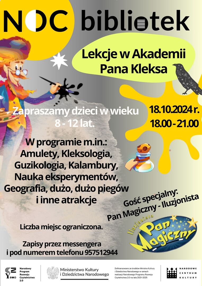 Zapraszamy do zapisów na Noc Bibliotek. Na uczestników czeka moc atrakcji, a na zakończenie spotkanie z iluzjonistą.