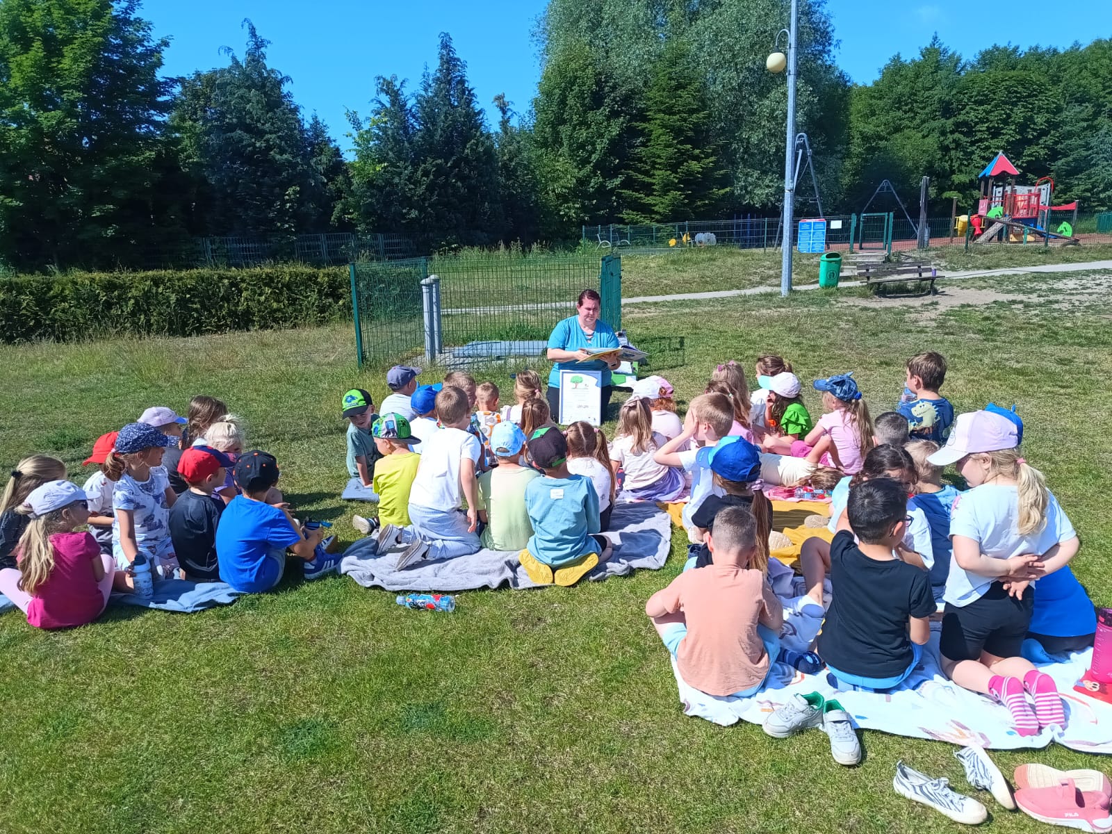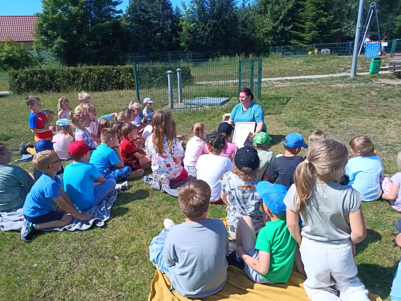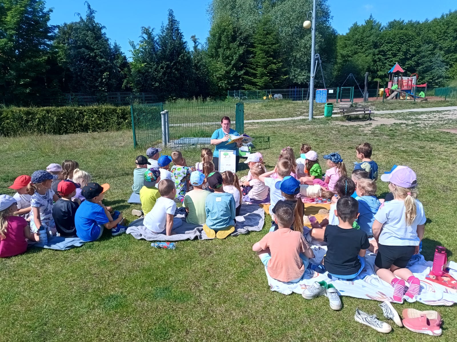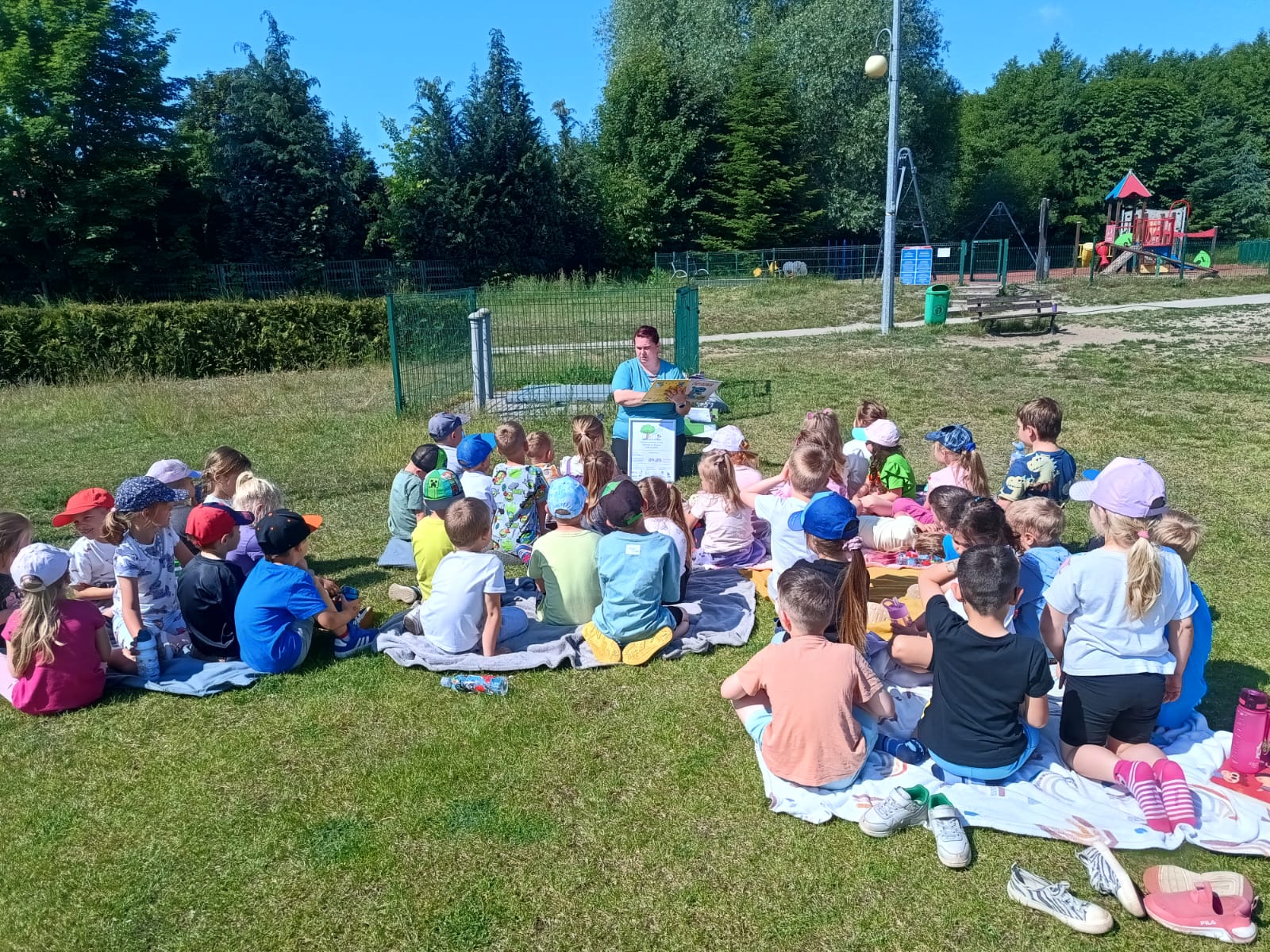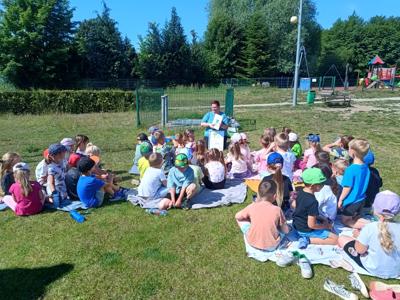 Dnia 3 czerwca 2025 r. Gminna Biblioteka Publiczna w Bogdańcu wzięła udział w Międzynarodowej Akcji „Czytanie na polanie”, organizowanej w ramach ogólnopolskiej kampanii społecznej „Cała Polska czyta dzieciom”. Odwiedziliśmy Przedszkole nr 2 w Bogdańcu w Zespole Szkolno-Przedszkolnym w Bogdańcu i w miłym otoczeniu przyrody poczytaliśmy książeczki. Nasza biblioteka od początku bierze udział w akcji "Czytanie na polanie". Cieszymy się że tym razem wzięło w niej udział 120 dzieci.