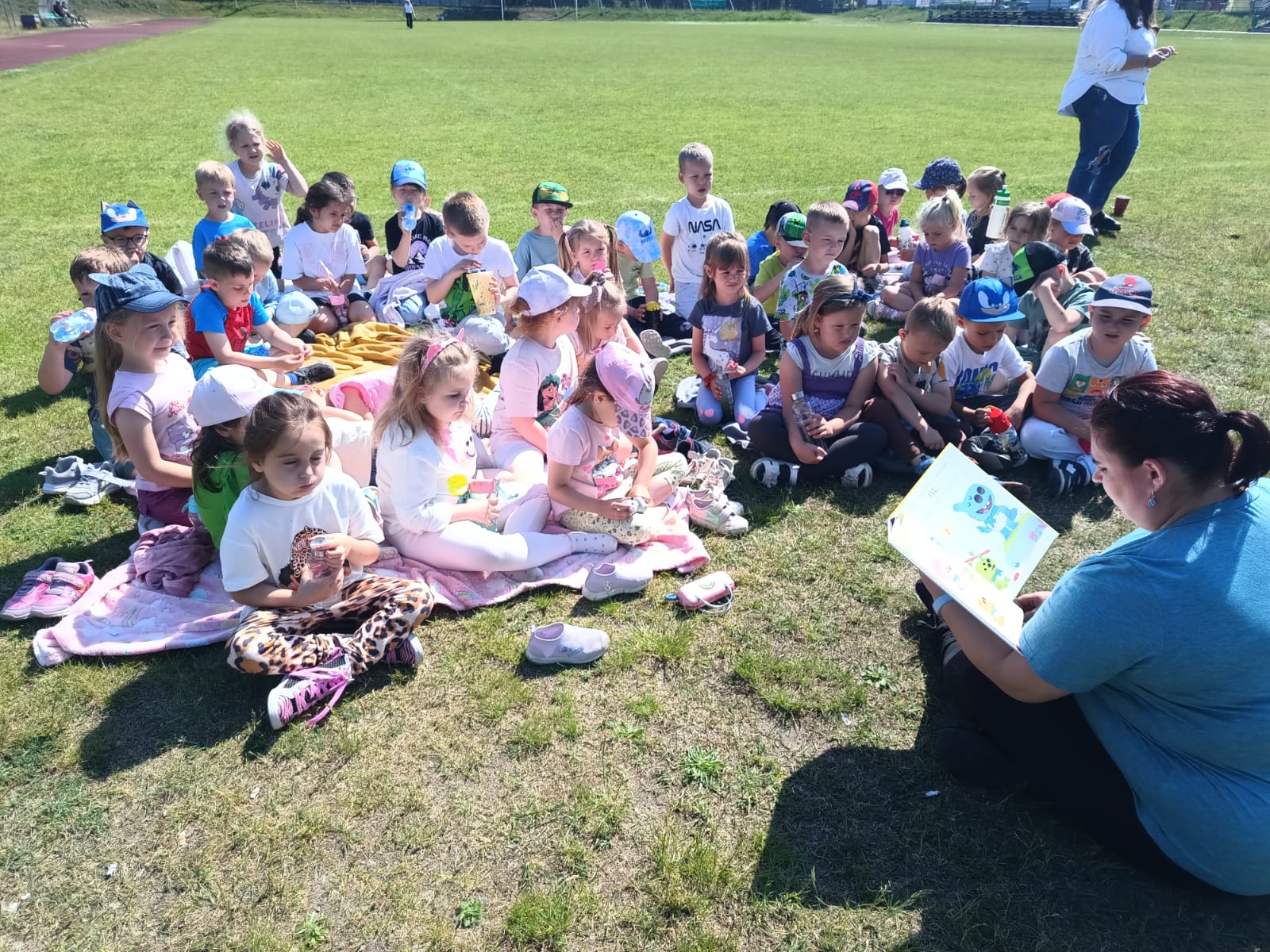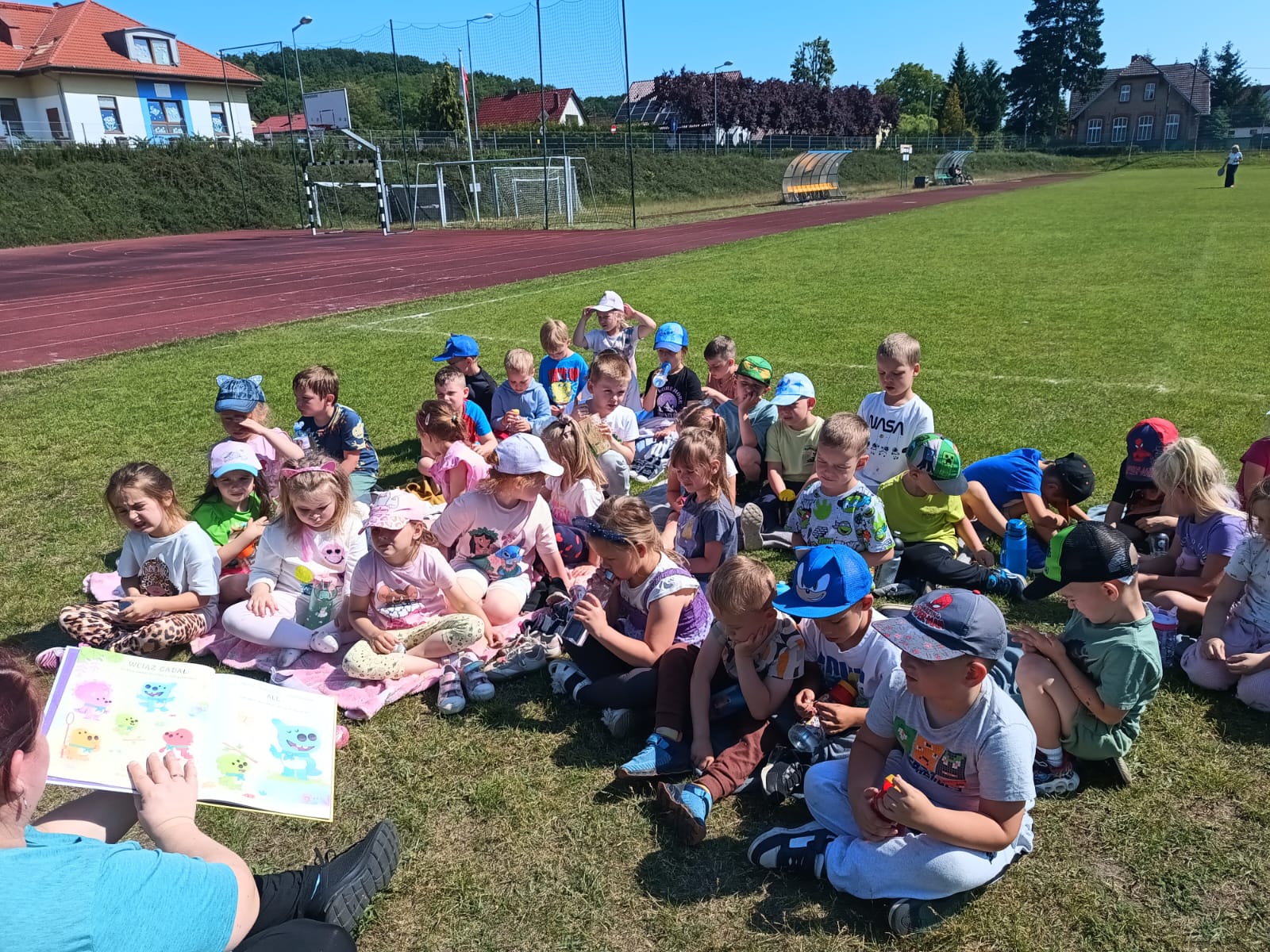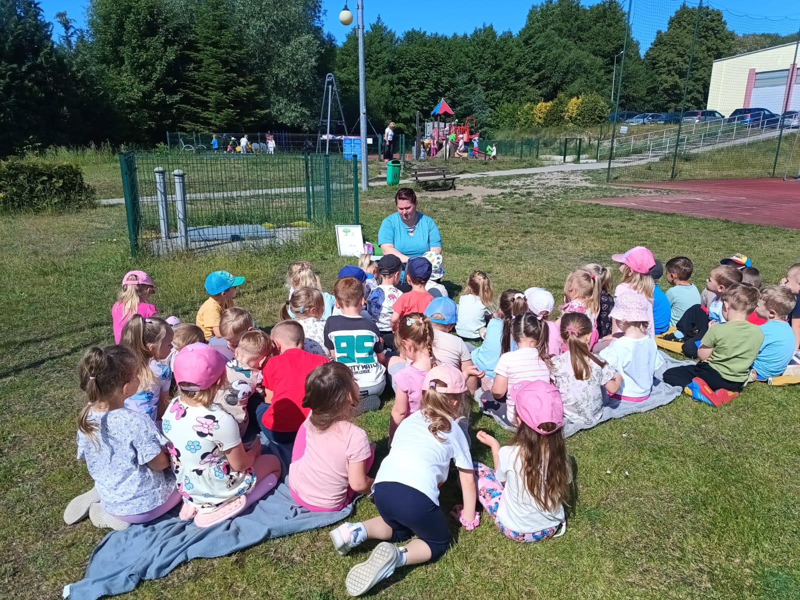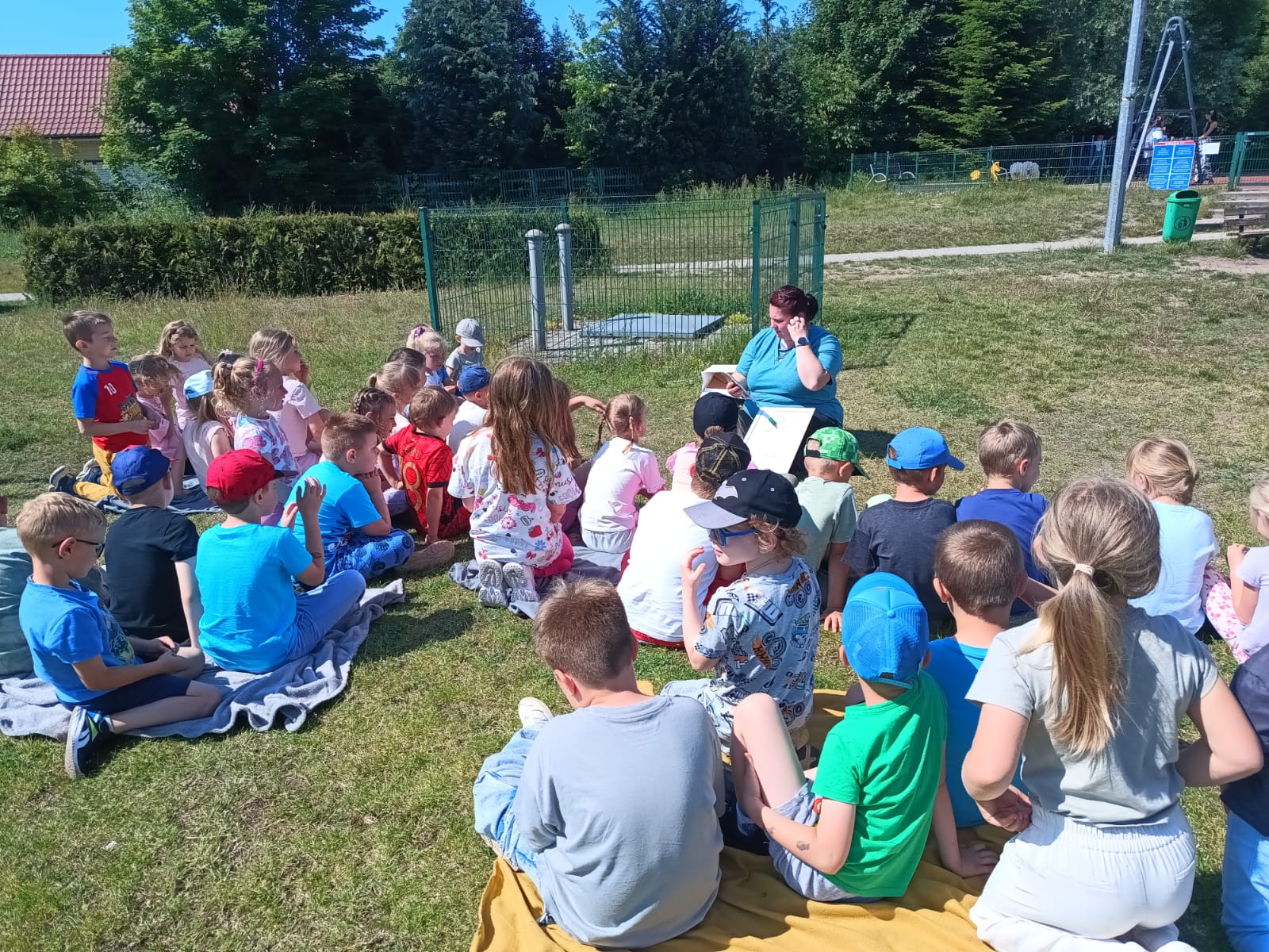 Dnia 3 czerwca 2025 r. Gminna Biblioteka Publiczna w Bogdańcu wzięła udział w Międzynarodowej Akcji „Czytanie na polanie”, organizowanej w ramach ogólnopolskiej kampanii społecznej „Cała Polska czyta dzieciom”. Odwiedziliśmy Przedszkole nr 2 w Bogdańcu w Zespole Szkolno-Przedszkolnym w Bogdańcu i w miłym otoczeniu przyrody poczytaliśmy książeczki. Nasza biblioteka od początku bierze udział w akcji "Czytanie na polanie". Cieszymy się że tym razem wzięło w niej udział 120 dzieci.